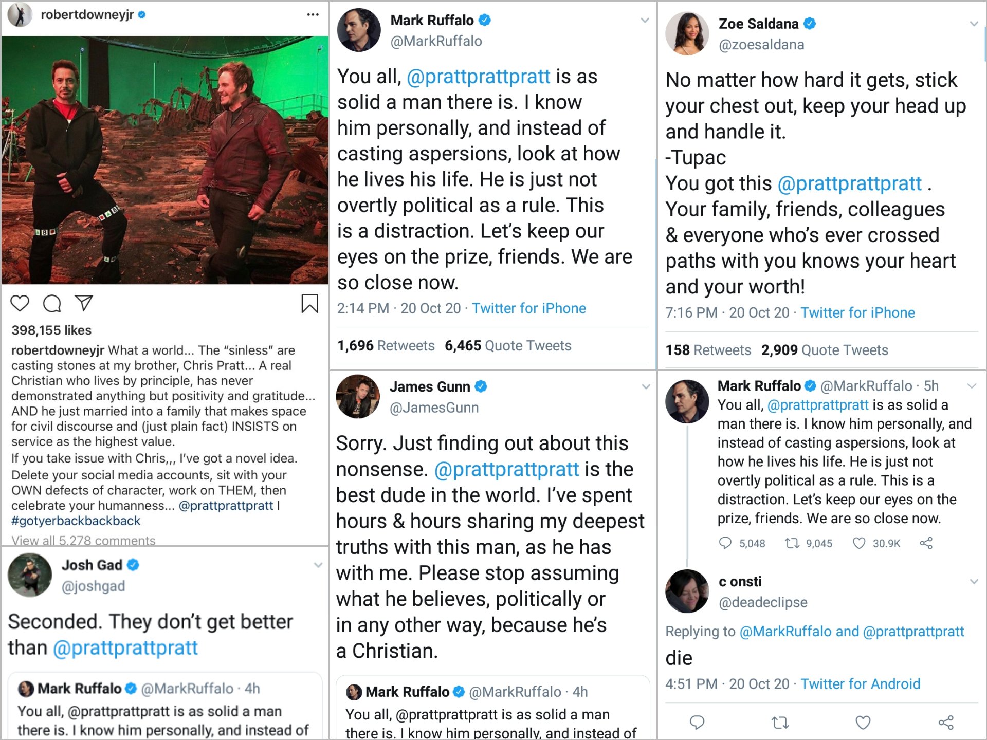 Dataracer On Twitter Chris Pratt S Mcu Co Stars Are Defending Him From The Cancel Mob They Re Now Being Bullied Amp Harassed Too Zoe Saldana Is Getting The Worst With Racist Slurs Like Coon